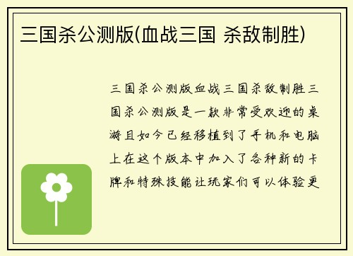 三国志战略版全攻略(全面指南:三国志战略版攻略大全)